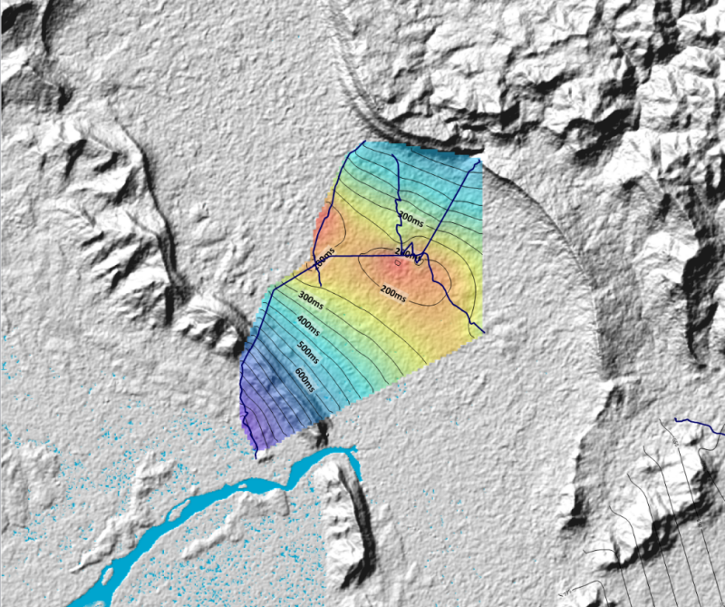 Figure 1 – Interpolated structure of the North Bokor anticline from our 2D seismic program.