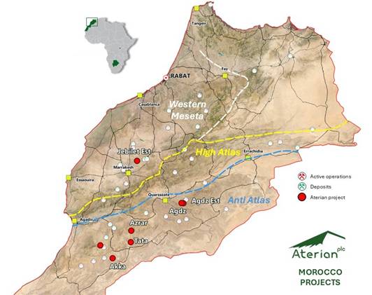 Aterian plc (AIM: ATN), the Africa-focused critical metals exploration company, is pleased to announce the approval of it’s recently commissioned Environmental Impact Assessment (”EIA”) for the 100%-owned Agdz Mining Licence, part of the Agdz (‘Cu-Ag‘) Project (‘Agdz‘ or the ‘Project‘) in the Kingdom of Morocco (‘Morocco‘).